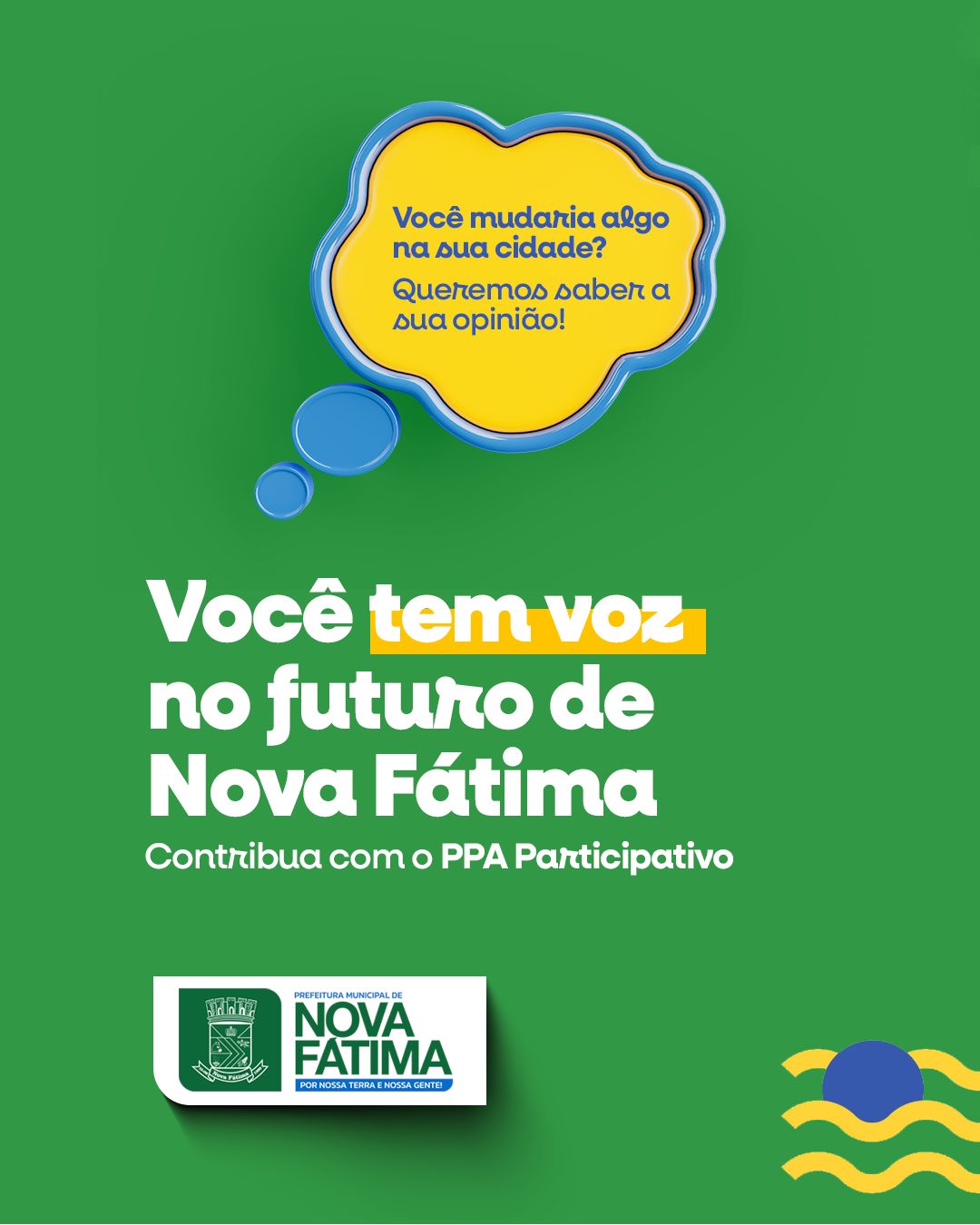 Participe do PPA Participativo 2026-2029 e nos ajude a construir uma Nova Fátima ainda melhor para todos.