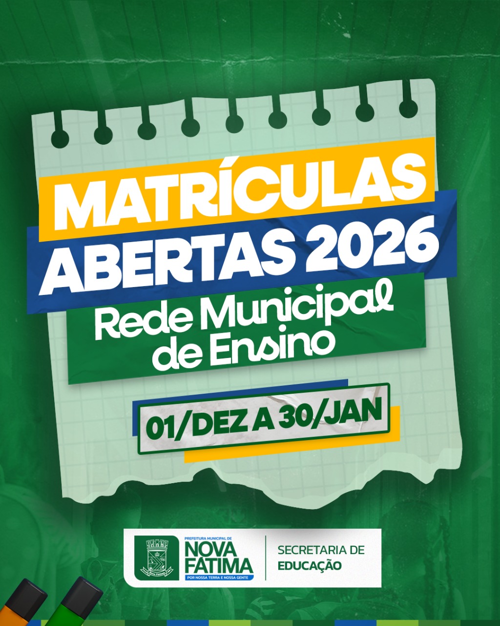 tenção, as matrículas para o ano letivo de 2026 já estão abertas e vão até 30 de janeiro!